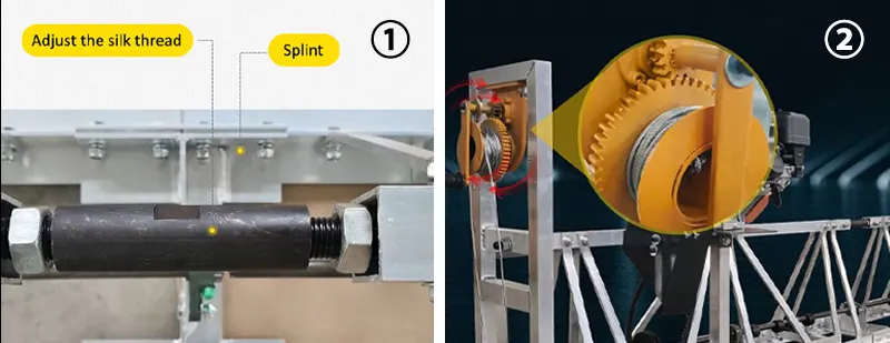 Wszystkie łożyska 12 -metrowej betonowej podłogi wibrująca wibrująca kratownica zrzucona maszyna przyjmuje importowane sferyczne łożyska równin, które mają silną odporność na uderzenie. Złącze jest wzmocnione 8 śrubami o wysokiej wytrzymałości. Ręczna wciągarka przyjmuje stalowe biegi aluminiowe, które są oszczędne, trwałe, wygodne i łatwe w obsłudze