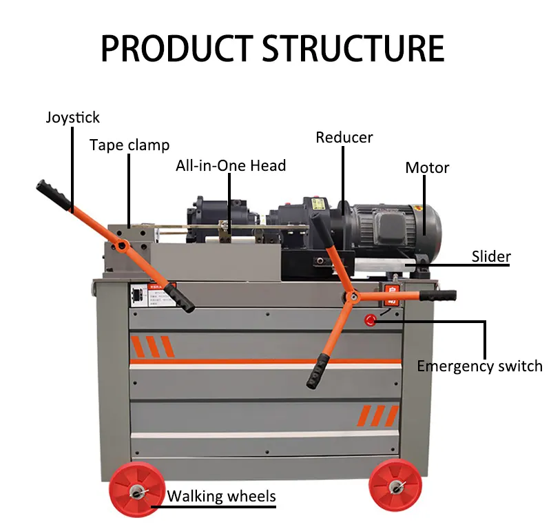 Ta wysokiej jakości maszyna do walcowania gwintu o 15 kW integruje funkcje usuwania żebra i przewracania nici. Dla łatwości i prędkości można ustawić wiele kąty. Ma podwójną osi konstrukcję torów biegowych, zapewniając stabilne paszę i działanie bez wysiłku. Maszyna jest wyposażona w kółki chodzące, ułatwiając ruch i oszczędzając wysiłek. Ponadto ogólna struktura jest kompaktowa, operacja jest płynna i ma zalety o wysokiej wydajności przetwarzania, dobrej jakości nici i niskiego zużycia energii.