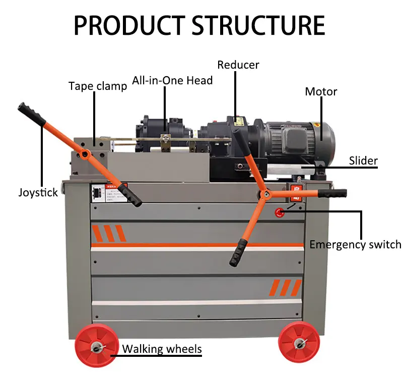 Wysokiej jakości 4,5 kW pręta z nić zbrojeniowym jest wyposażona w automatyczny system karmienia i hydrauliczne urządzenie zaciskające. Jest łatwy w obsłudze i może szybko ukończyć przetwarzanie różnych specyfikacji stalowych prętów. Ogólna struktura jest kompaktowa, operacja jest stabilna i ma charakterystykę wysokiej wydajności przetwarzania, dobrej jakości nici i niskiego zużycia energii.