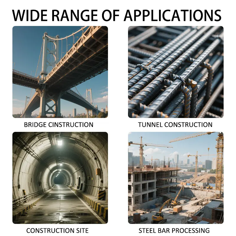 Maszyna toczącego gwint o 4,5 kW jest kluczowym sprzętem do mechanicznego połączenia stalowych prętów we współczesnej konstrukcji. Jest powszechnie stosowany w różnych projektach betonowych żelbetowych. W projektach na dużą skalę, takich jak budynki wieżowców, mosty i tunele, może skutecznie ukończyć przetwarzanie końcowe głównych stalowych prętów belek i kolumn, a także pręty ze stali ściennej ścinającej, osiągając połączenie mechaniczne o wysokiej wytrzymałości. W prefabrykowanych fabrykach komponentów może przetwarzać stalowe pręty stalowe połączone z rękawem wymagane do prefabrykowanych budynków. I ma również zastosowanie do specjalnych projektów o ścisłych wymaganiach dotyczących jakości połączenia stalowego, takie jak galerie rur metra i projekty energii jądrowej.