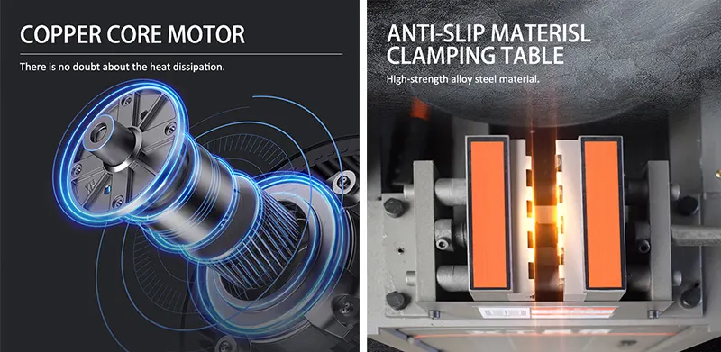 Wysokiej jakości maszyna do walcowania gwintu o 7,5 kW jest wyposażona w duży silnik o 7,5 kW, który ma silną moc i ułatwia przetwarzanie stali gwintowanej o wysokiej wytrzymałości. Przyjmowane są gwintowane gwintowane ze stopu i bardzo precyzyjne szyny prowadzące, a gwintowane zęby utworzone przez proces walcowania zimnego są pełne, z wysoką precyzją i wytrzymałością na rozciąganie przekraczającą standard materiału podstawowego.