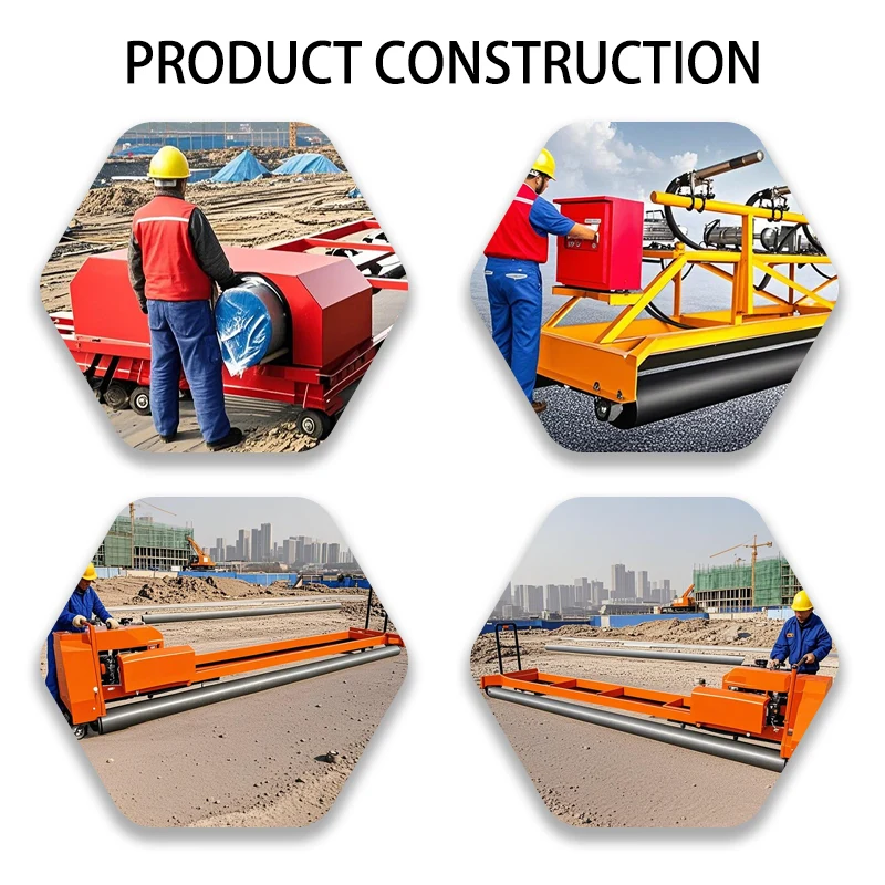 The four roll paver machine with frame is an efficient concrete paver equipment. Based on the traditional three-roll paver machine, it adds an auxiliary leveling roller and is equipped with a variable-supported frame, further enhancing the paver's leveling accuracy and adaptability to construction. It is suitable for large-scale concrete construction with high precision requirements, such as highways, airport runways, industrial floors, etc. This durable four roll paver machine with frame is particularly suitable for projects with strict requirements for leveling accuracy and paver width, and can significantly reduce the maintenance cost in the later stage.